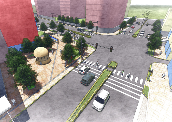 This green corridor is designed for the residents and tourists to safely walk, bike and socially gather along the street. The kids would be able to play and travel to schools safely and independently.
