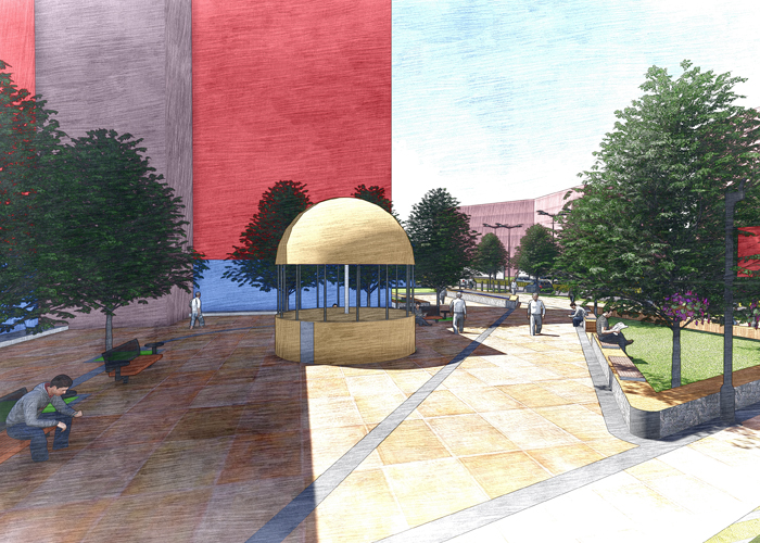 Inspired by Biophilia, the design creates a composition of multiple forms relating to human scale looking optimistically to the future.